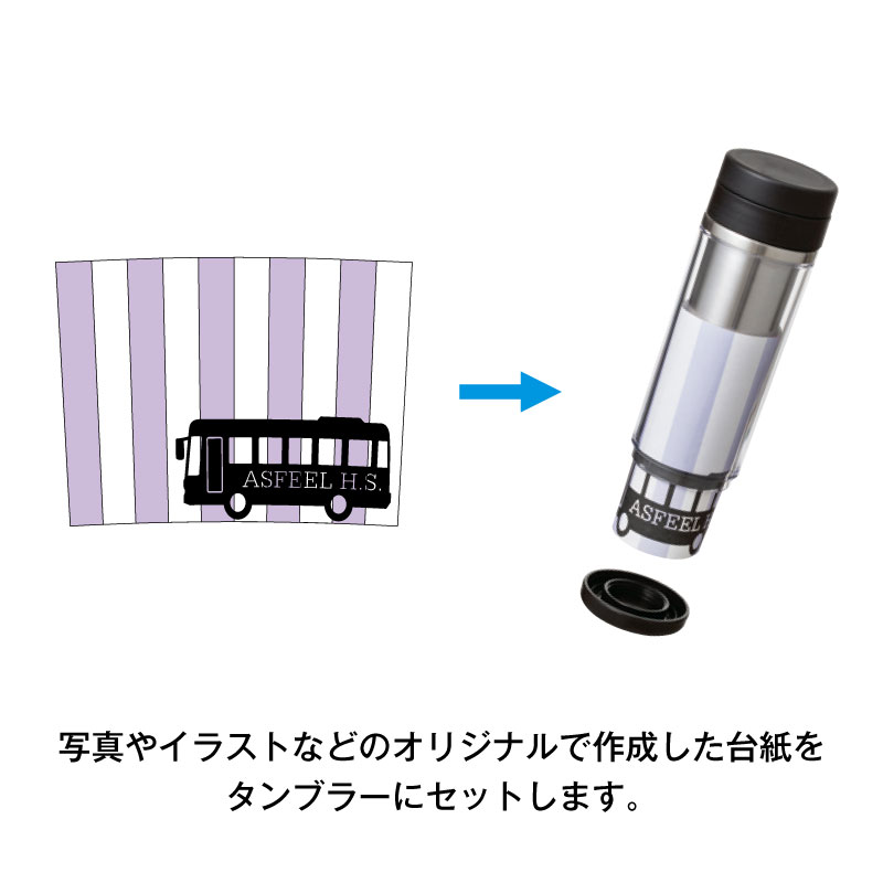 オリジナルで作成した台紙で世界に一つだけのタンブラーを作成できます。コンパクトな350mlタイプ。