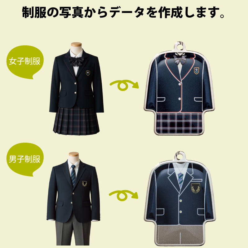 プレミアム制服キーホルダーを作成するには制服の写真が必要になります。