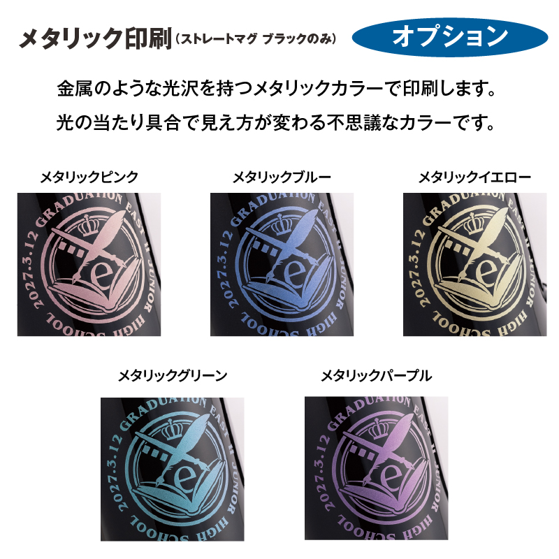 本体色ブラックの場合のみ、オプションでメタリック印刷をご選択いただくことが可能です。