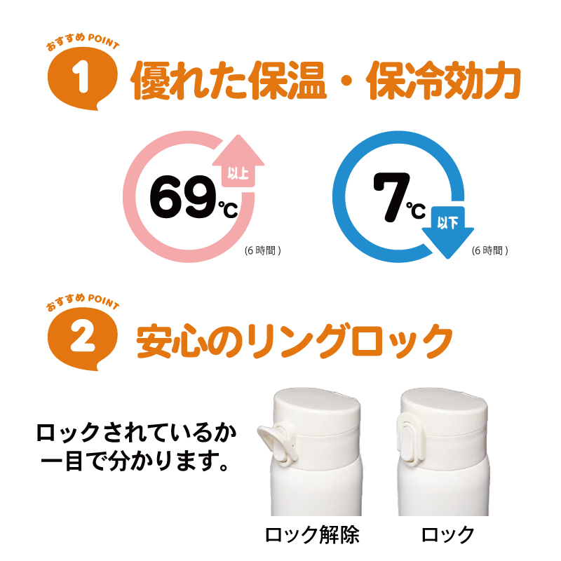 保温効力:69℃以上、保冷効力:7度以下(6時間)