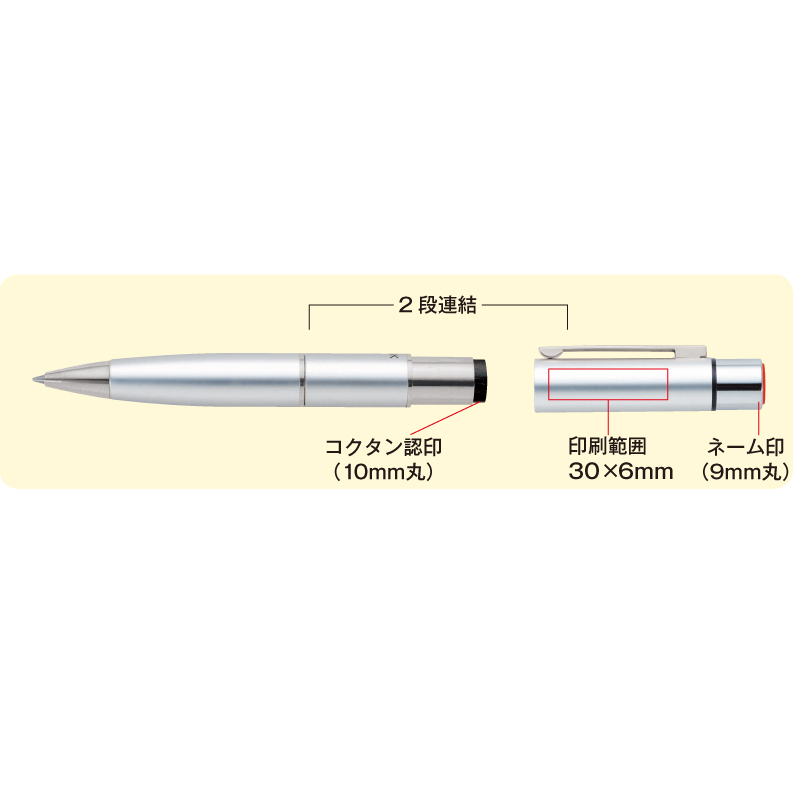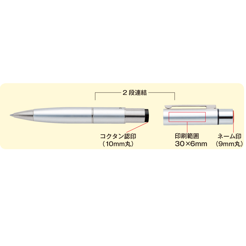ネーム印(9㎜)、コクタン認印(10㎜)と黒ボールペンがセットになった便利な1本。