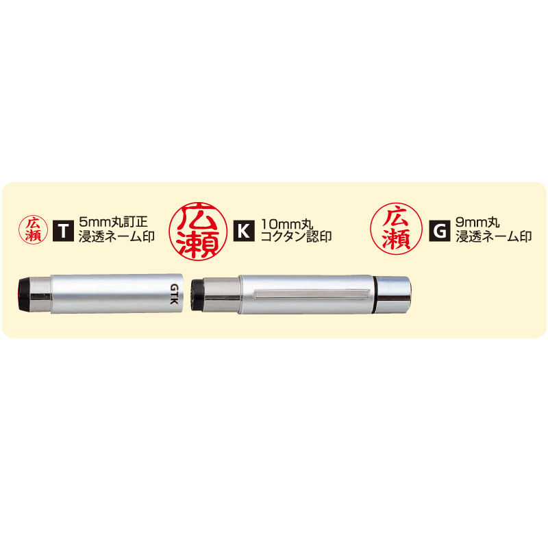 ネーム印(9㎜)とコクタン認印(10㎜)と訂正印(5㎜)の3つがセットになった便利な1本。