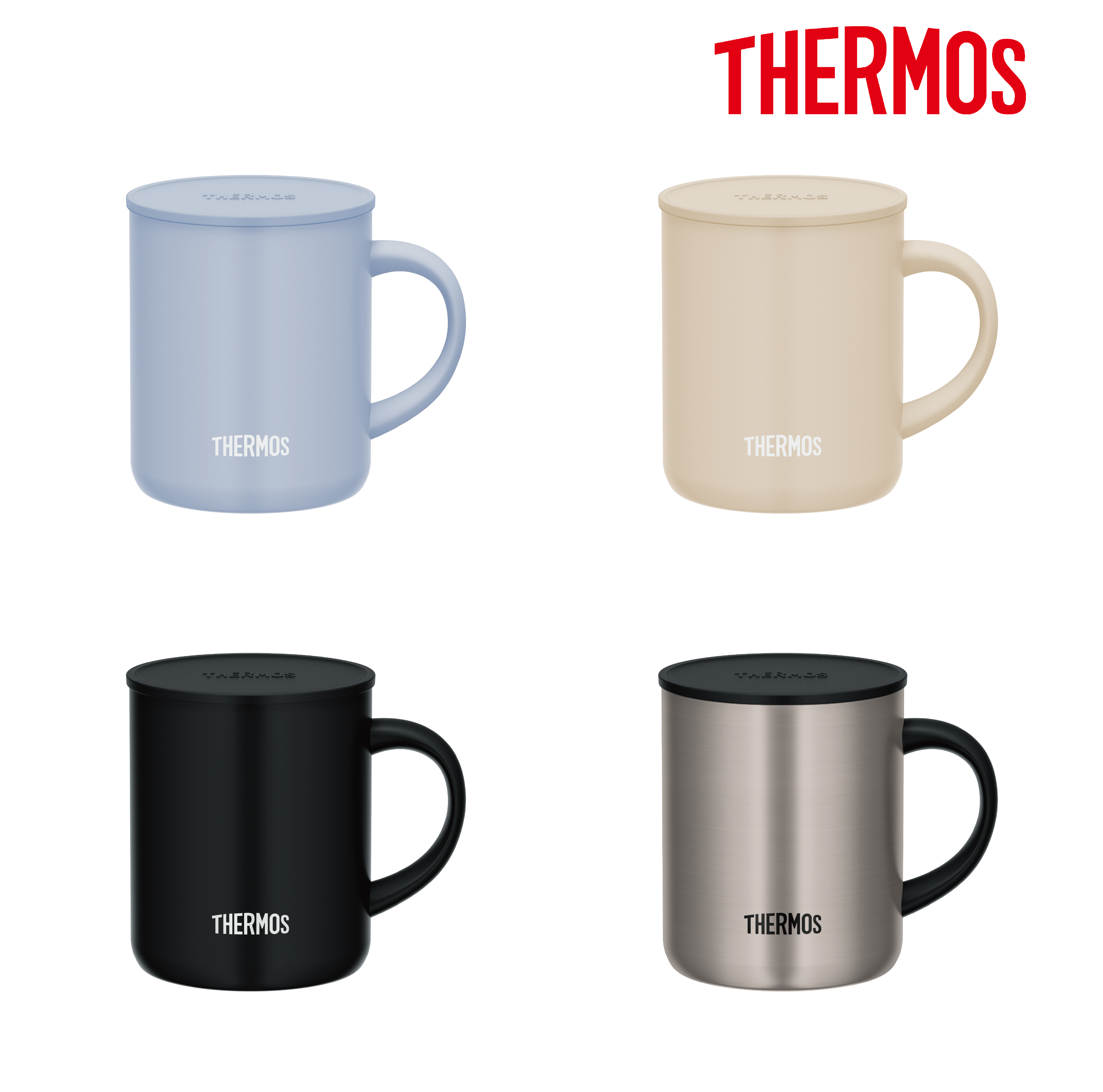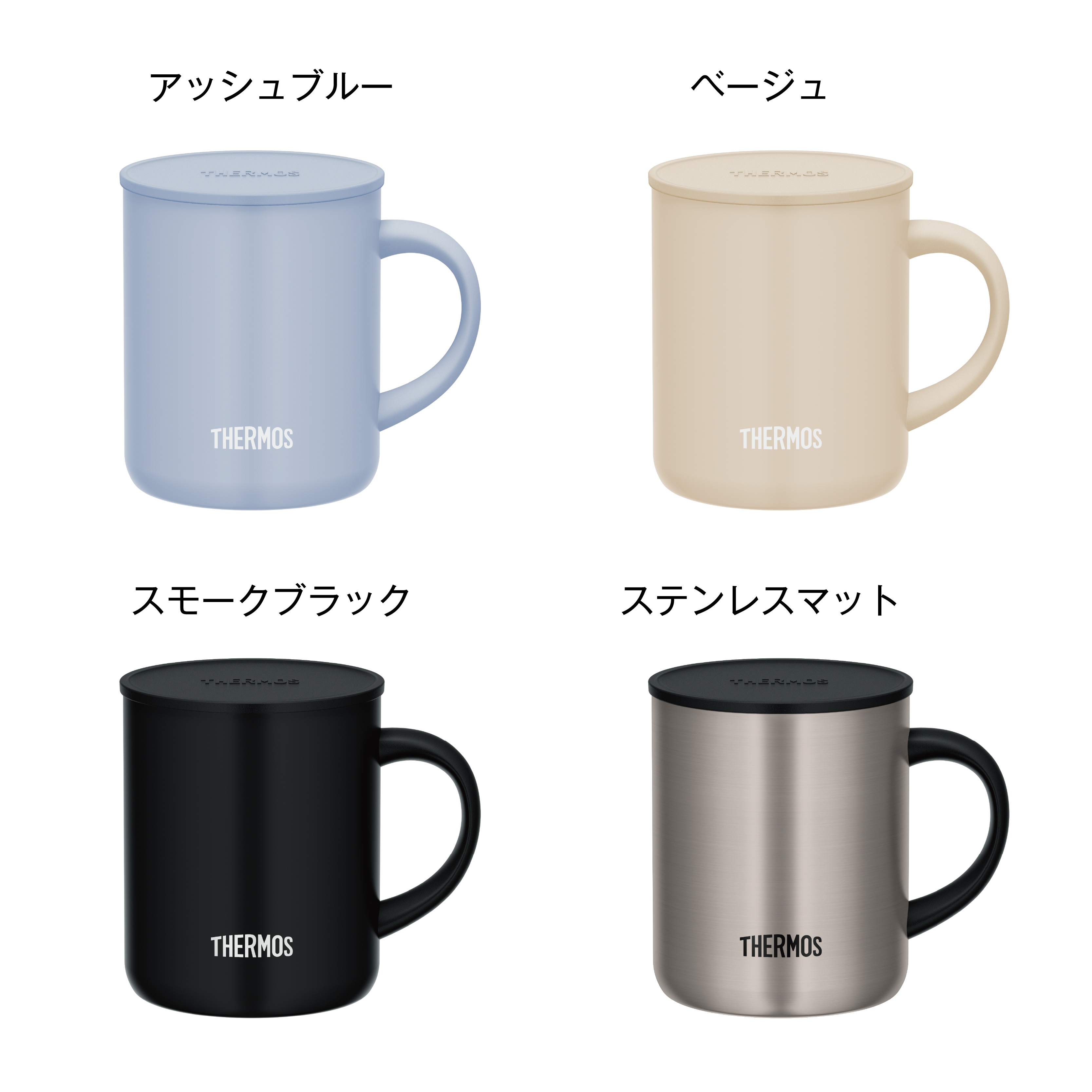 小さめタイプからたっぷり飲める大容量タイプまで選べるふた付マグカップ。