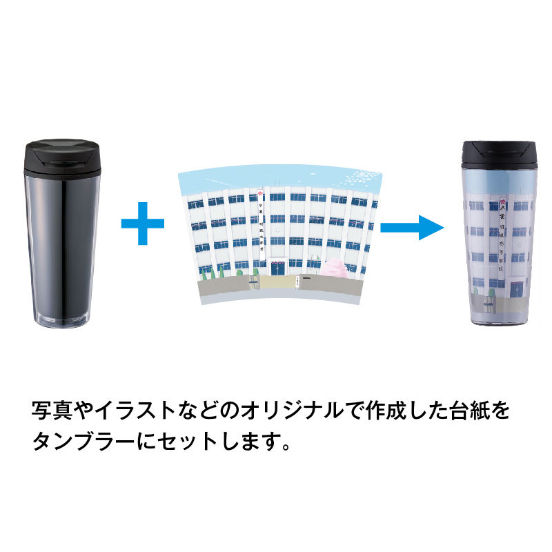 オリジナルで作成した台紙で世界に一つだけのマイタンブラーを作成できます。