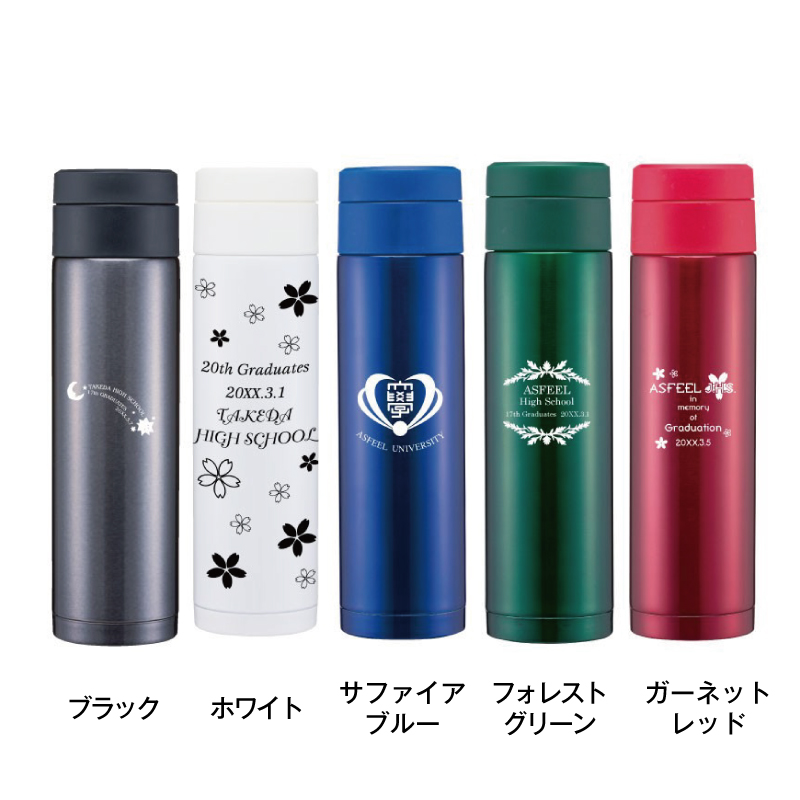 保温・保冷兼用で、季節を選ばず末永くお使い頂けます。明るいカラーバリエーションは学年色としても人気があります。