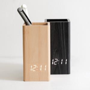 | 商品特徴 | ペンスタンド機能の付いたスタイリッシュな木製LEDクロックです。 電源はUSB,乾電池のどちらの方法からも給電できます。充電式ではございません。 ※LED表示の時計は電池消費量が激しい為、通常はUSB給電をお勧めしております。 電池給電の場合は必ず「省エネモード」でご使用ください。 |